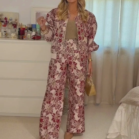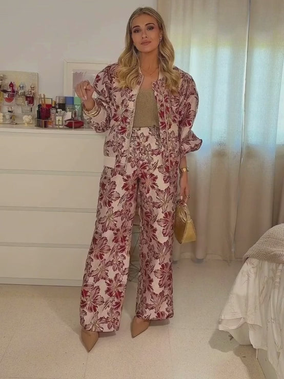 El conjunto Murcia se presenta como una propuesta moderna y sofisticada que combina diseño y personalidad en una silueta actual y versátil. Pensado para elevar cualquier look, destaca por su estampado con detalle lúrex, cuyo hilo brillante aporta un efecto sutil y elegante, ideal tanto para el día como para la noche.