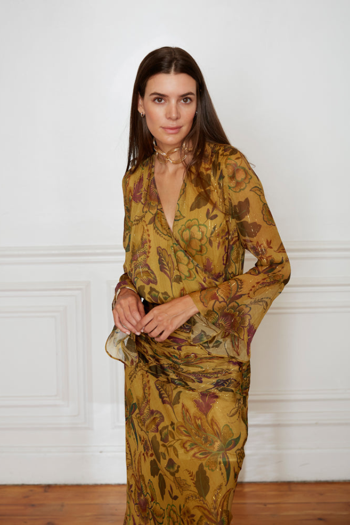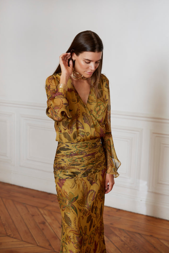 La falda a juego completa el conjunto con una silueta equilibrada y muy favorecedora. Su cintura se adapta cómodamente sin oprimir, mientras que el tejido acompaña el movimiento al caminar. El Conjunto Toledo, en color mostaza, es una opción versátil y atemporal que podrás reutilizar fácilmente combinando sus piezas por separado con distintos accesorios.